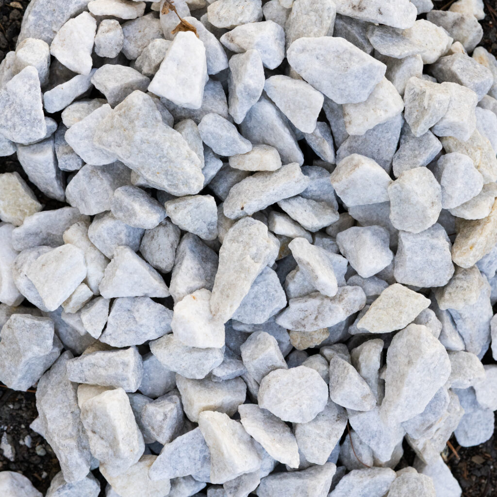 A naturally colored, sparkling white 3/4 inch stone. If you want to your landscape beds to shine, use this decorative stone.